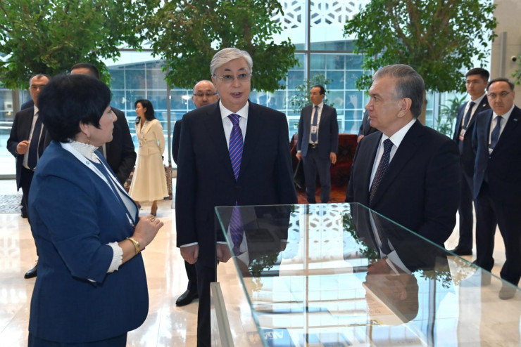 Кроме того, Касым-Жомарт Токаев вместе с Шавкатом Мирзиеевым посетил мавзолей Толе би в Ташкенте.