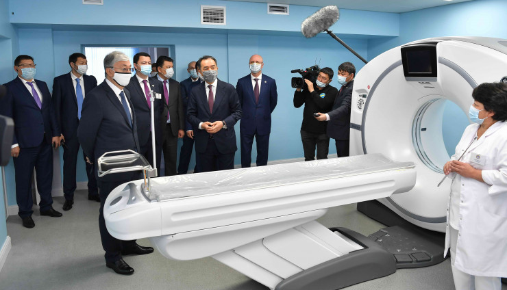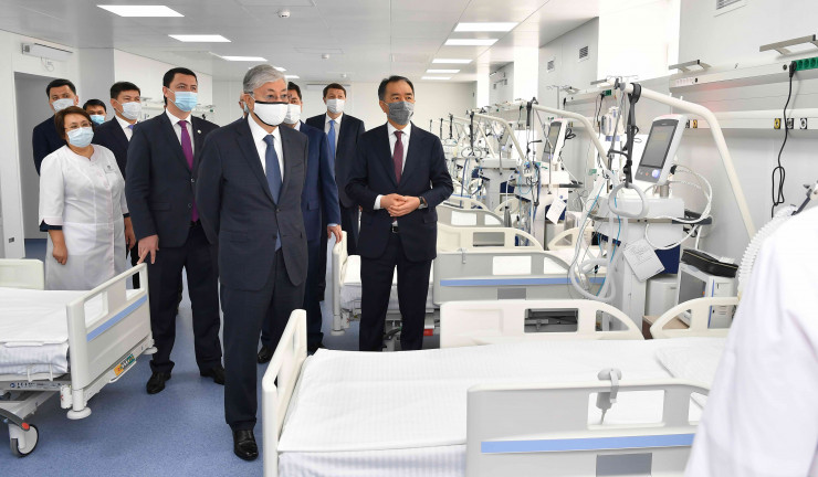 Касым-Жомарт Токаев осмотрел оснащенные современным оборудованием палаты, рассчитанные на оказание стационарной медицинской помощи для 500 человек.