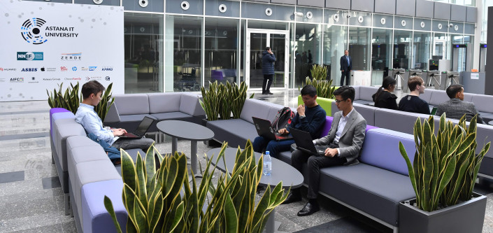 В Astana IT University Главу государства проинформировали об основных направлениях работы вуза, показали учебные аудитории, лаборатории.