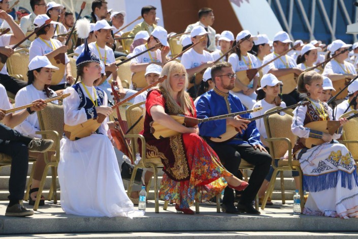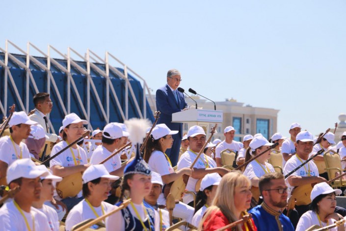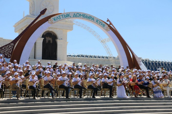 В прошлом году в честь Национального дня домбры на площади у монумента "Қазақ Елі" в едином оркестре на домбре сыграли более 2000 музыкантов.
