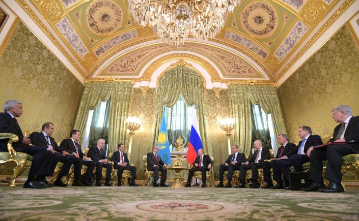 На фотографиях видно, что казахстанскую делегацию на переговорах представляют: руководитель Администрации Президента Бакытжан Сагинтаев, глава МИД Бейбут Атамкулов, первый заместитель премьер-министра - министр финансов Алихан Смаилов, председатель КНБ Карим Масимов и посол Казахстана в России Имангали Тасмагамбетов.