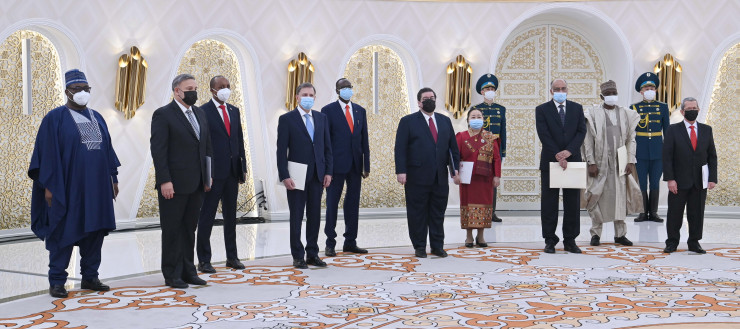 Верительные грамоты вручили послы Кубы - Оскар Сантана Леон (с резиденцией в городе Нур-Султане), Бангладеш - Камрул Ахсан, Доминиканской Республики - Франк Ганс Данненберг Кастельянос, Аргентины - Эдуардо Антонио Зуайн, Перу - Хуан Хенаро дель Кампо Родригес, Нигерии - Якубу Сантураки Сулейман, Лаоса - Вилаван Йиапохэ, Чада - Адам Бешир Махамуд, Руанды - Фиделис Нтампака Миронко, Бенина - Акамби Андре Окунлола-Биау.