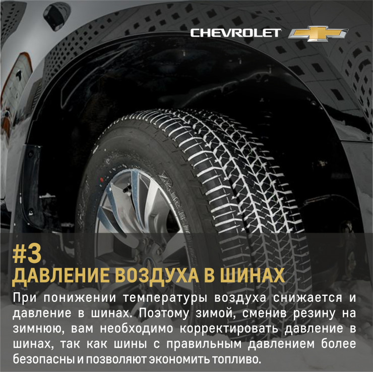 При понижении температуры окружающего воздуха снижается и давление в шинах. Поэтому зимой, сменив резину на зимнюю, вам необходимо корректировать давление в шинах, так как шины с правильным давлением более безопасны и позволяют экономить топливо.