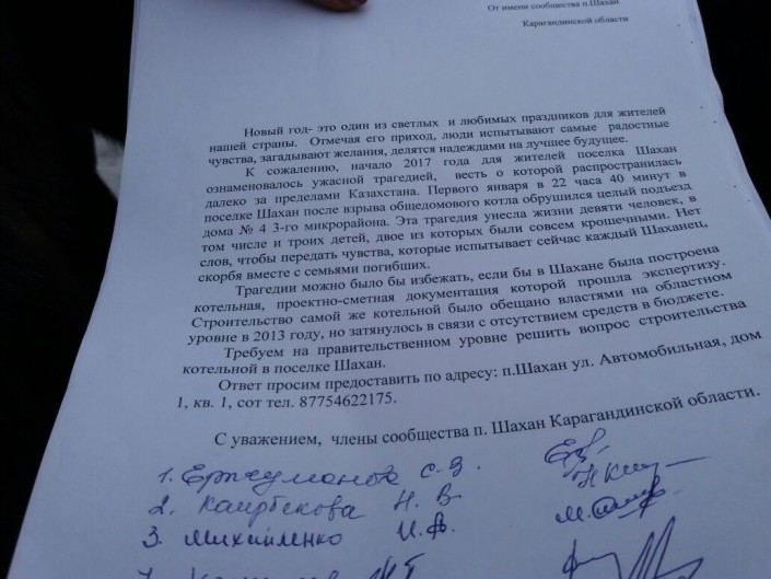 Жители Шахана обратились к депутатам Мажилиса и Правительству. Они требуют, чтобы им наконец построили котельную. По словам шаханцев, трагедию можно было бы избежать, если бы власти вовремя позаботились о выделении денежных средств, передает корреспондент Tengrinews.kz.