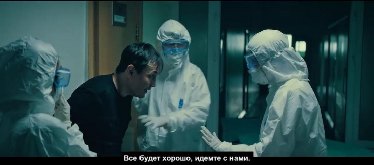 В середине видео показан мужчина, который отказывается ложиться в стационар, несмотря на выявленный вирус. Он пинает двери больницы, дерется с врачами. В какой-то момент мужчина набрасывается на врача и срывает ее очки и маску.