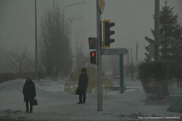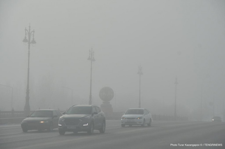 Плотный туман накрыл Нур-Султан, передает корреспондент Tengrinews.kz.