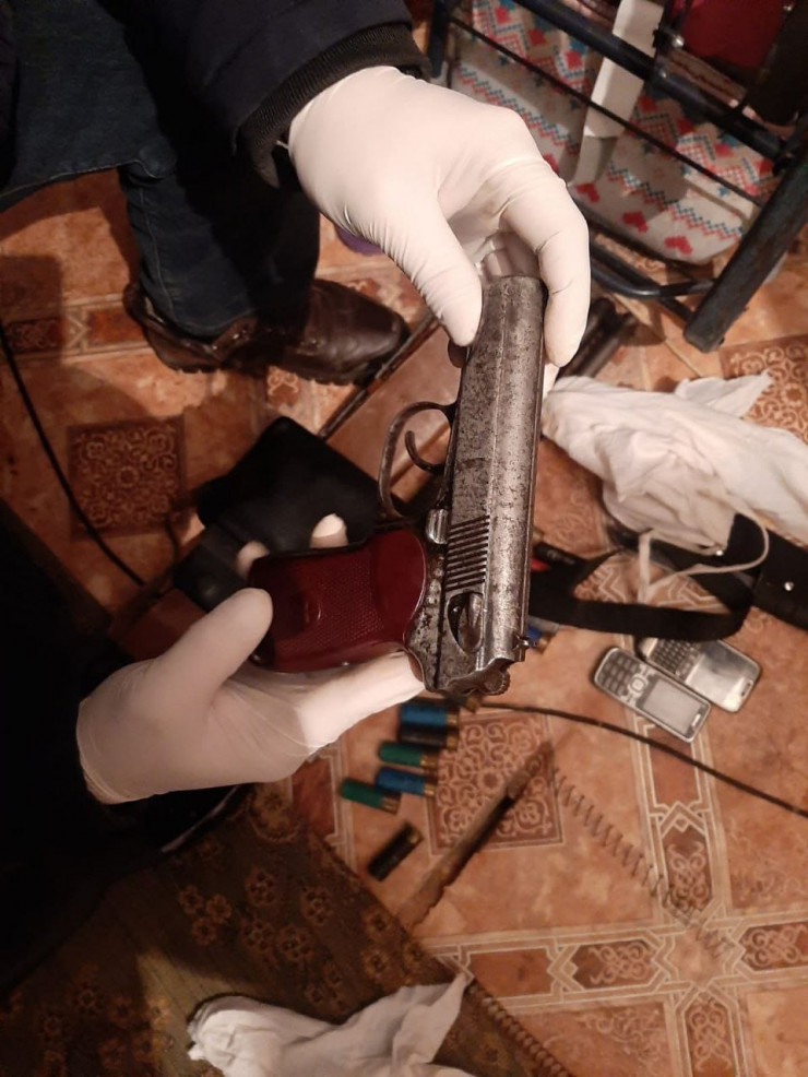 При проведении обыска по месту жительства подозреваемого полицейские обнаружили пистолет "Макарова", охотничье ружье Mossberg, 12-го калибра, патроны 9-го калибра (от ПМ) в количестве 38 штук, патроны 12-го калибра в количестве 19 штук, патронташ, охотничий нож, религиозные книги в количестве 18 штук.