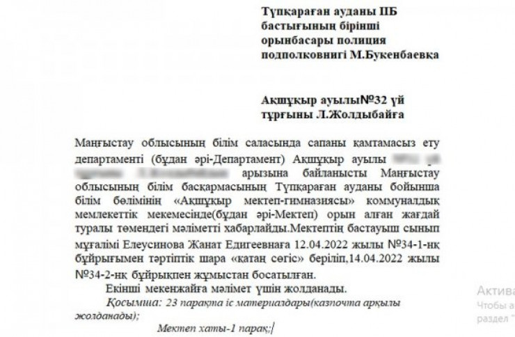 Учитель дала пощечину первокласснице в Мангистау. Инцидент попал на видео
