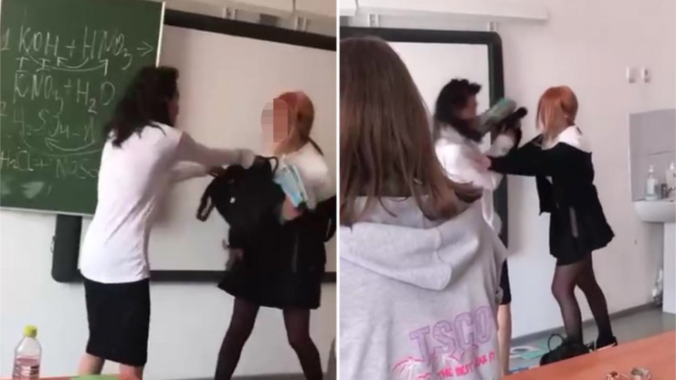 Между учителем и ученицей произошла потасовка в Талдыкоргане Кадры из видео