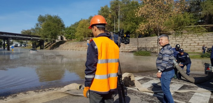 В Алматы произошел порыв теплотрассы. Улицу Бокейханова залило горячей водой. Сейчас на месте работают сотрудники аварийных служб. Tengrinews.kz публикует кадры с места ЧП.
