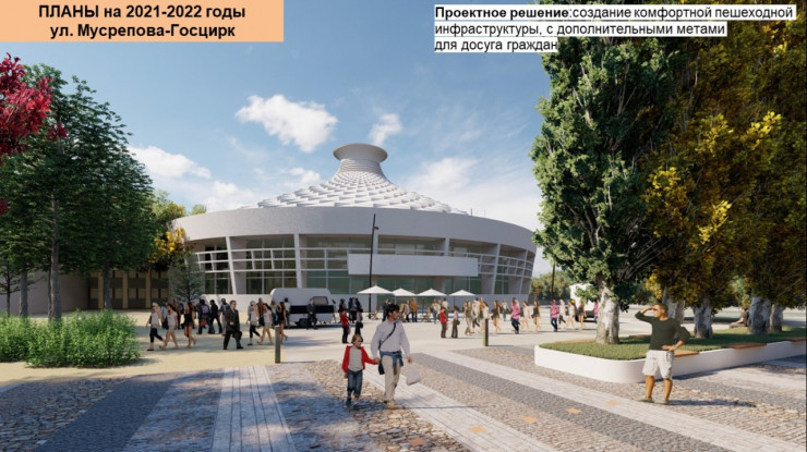 Главный архитектор также предложил около цирка сделать заглубленное в ландшафт кафе. Вдоль всей улицы - фонари, скамейки, урны, питьевые фонтанчики.