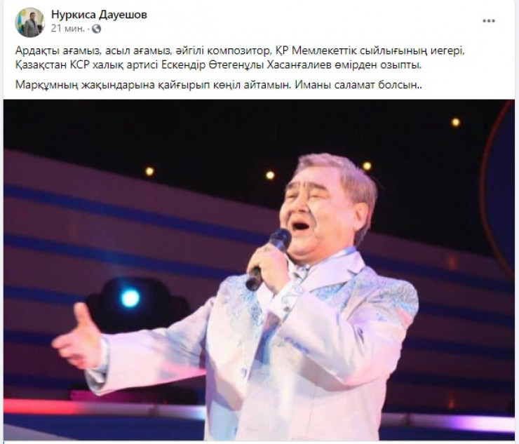 Умер казахстанский певец и композитор Ескендир Хасангалиев