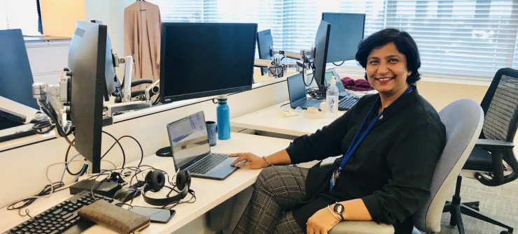 Фото Службы новостей ООН Аншу Шарма до пандемии, в нью-йоркской редакции Службы новостей ООН.
