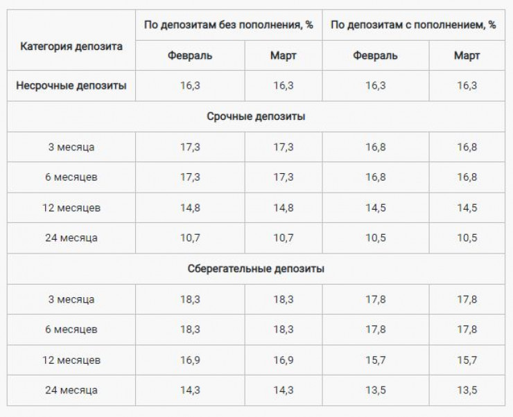 Предельные ставки по депозитам в тенге на март 2023 года остались без изменений и были сохранены на уровне февральских значений.