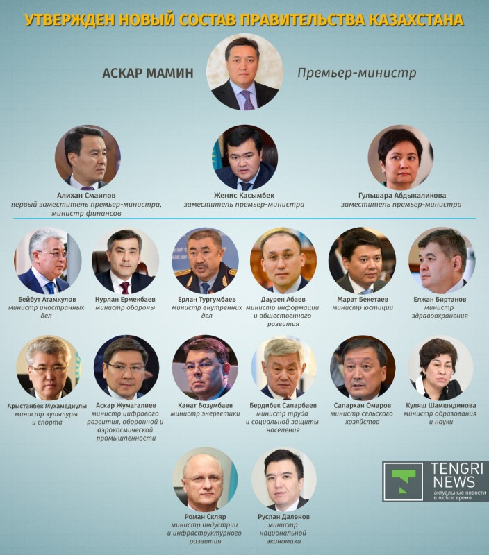 Премьер-министр - Аскар Мамин;