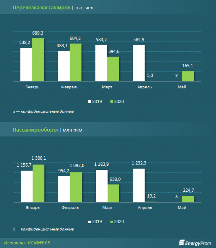 Непосредственно в мае 2020 года пассажироперевозки воздушным транспортом выросли до 165,1 тысячи человек — в 30,9 раза больше, чем в "карантинном" апреле, когда самолетами было перевезено всего 5,3 тысячи человек.