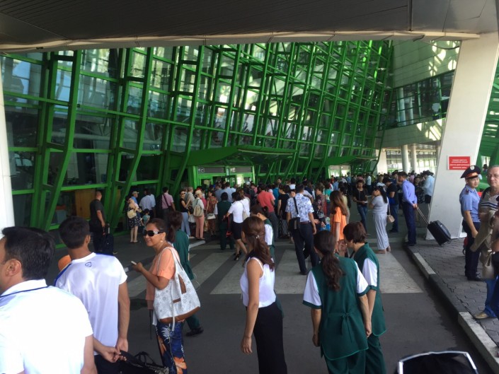 Как стало известно, утром 6 августа, поступил звонок о том, что аэропорт Астаны якобы заминирован. В связи с этим из здания эвакуировали всех пассажиров.