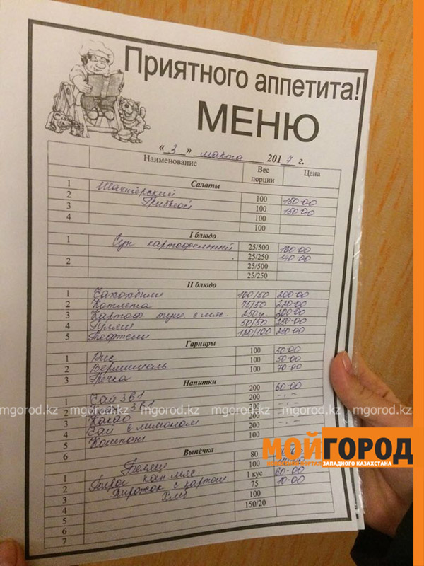 Напомним, журналисты портала "Мой Город" узнали, чем кормят чиновников в столовых областных акиматов Уральска и Атырау. Представителей СМИ удивили низкие цены в столовой Уральска.