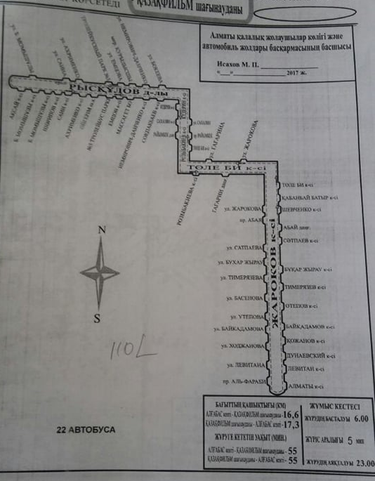 Маршрут охватывает магистральные улицы Жарокова, Розыбакиева, Рыскулова и будет курсировать между микрорайонами Казахфильм и Алгабас. На его обслуживание выставлены 20 низкопольных автобусов большой вместимости с интервалом движения шесть-семь минут.