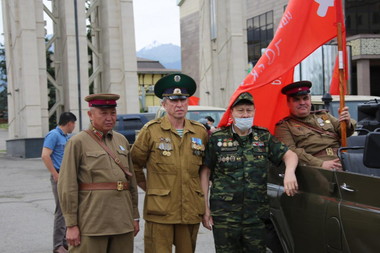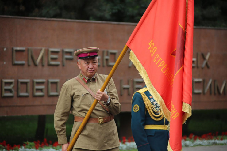 "Большой вклад, жертвы, горести, радости - участие казахстанцев в годы войны по достоинству отмечено правительством и народом. Сегодня из Центрального музея Москвы вернулись на Родину боевые знамена 1941 года частей и соединений, которые формировались в Алма-Ате", - сказал председатель алматинского совета ветеранов Вооруженных сил Мэлс Шампиев.