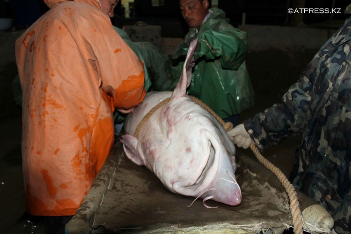 В Атырау из огромной "царь-рыбы" сцедили 30 килограммов икры © atpress.kz/Рахим Койлыбаев