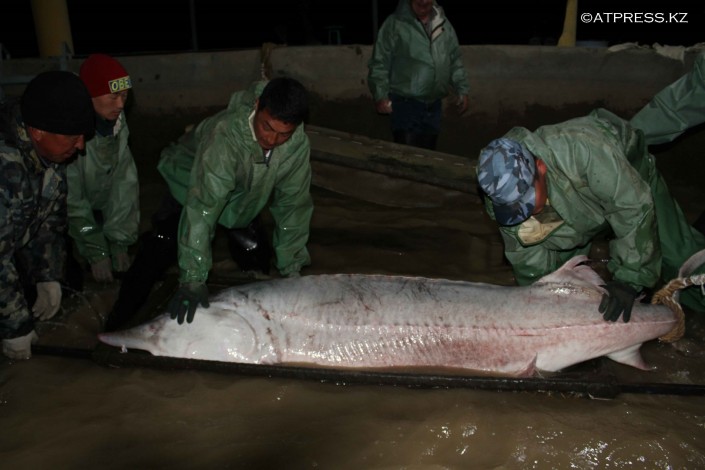 В Атырау из огромной "царь-рыбы" сцедили 30 килограммов икры