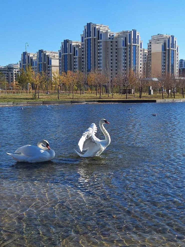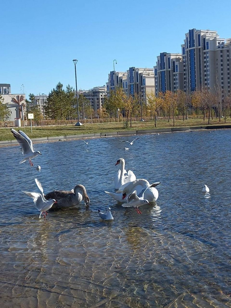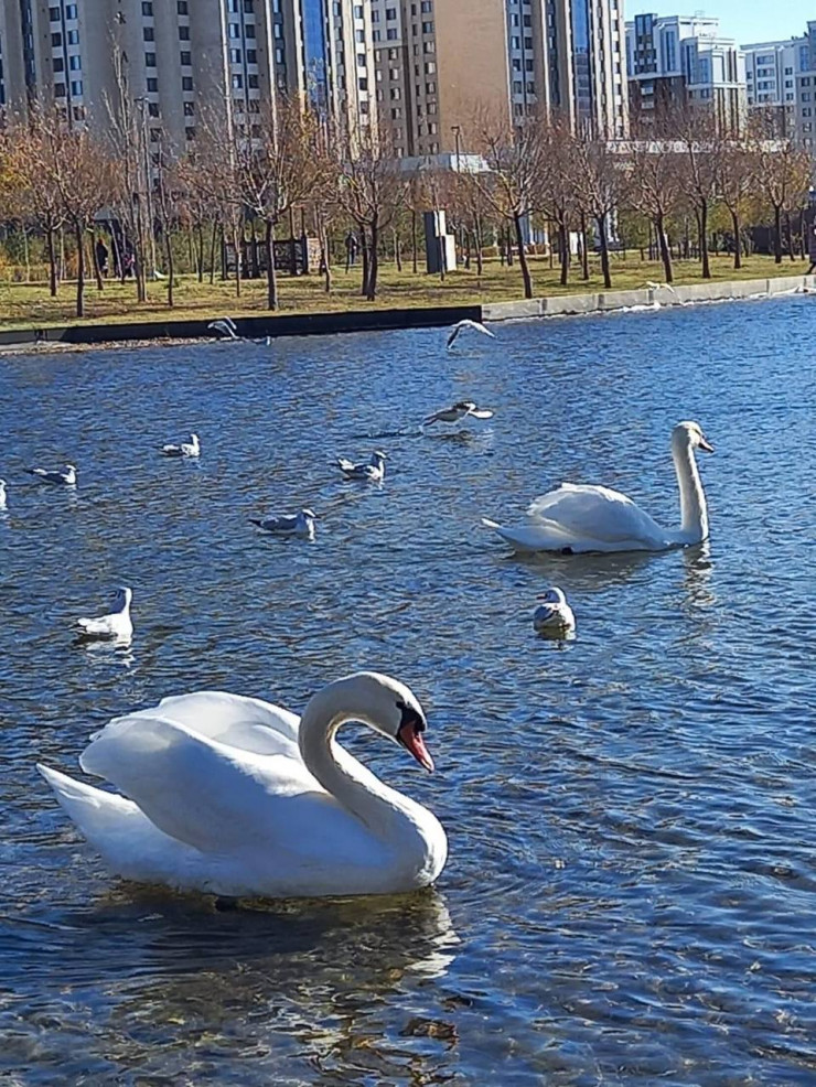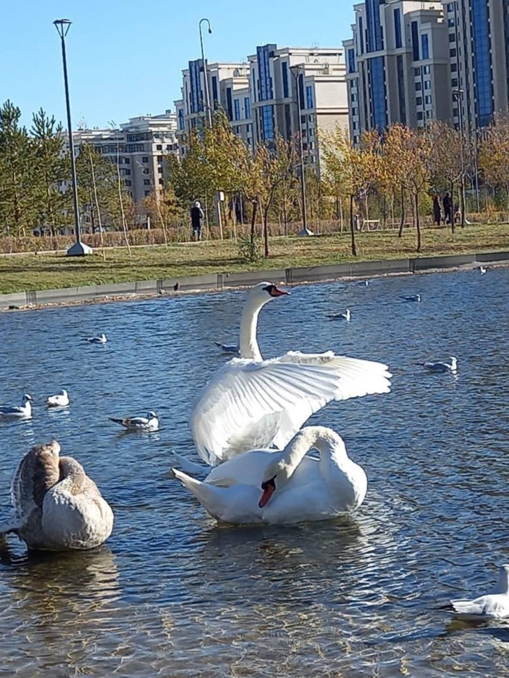 В Ботанический сад Астаны прилетели лебеди