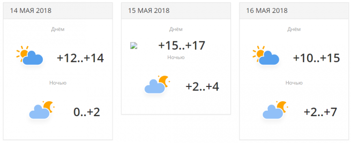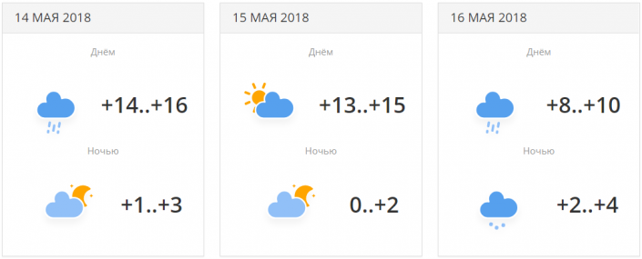 Город ожидают три пасмурных дня и ночные осадки 14 мая. Температура составит от +15...+17 до +20 градусов днем и около +5...+10 градусов ночью.