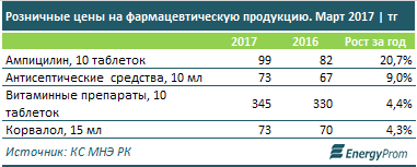 "Розничные цены на фармпродукцию поднялись за год ощутимо: так, ампициллин подорожал на 20,7 процента, антисептические средства - на 9 процентов, витамины - на 4,4 процента, корвалол - на 4,3 процента", - говорится в материалах исследований.