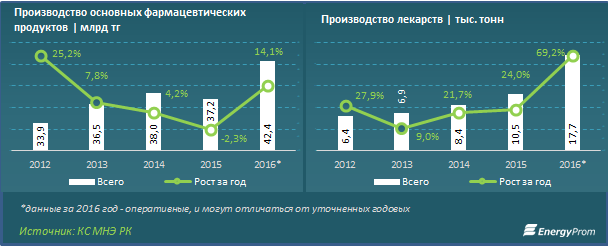 За 2016 год рост выпуска фармпродукции в стоимостном выражении составлял 14,1 процента год к году. В многолетней динамике небольшой спад (минус 2,3 процента за год) наблюдался лишь в 2015-м, прочие годы показывали стабильный прирост.