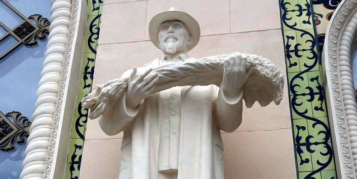 "Сами скульптуры были уничтожены еще в 1963 году. Все цветные изображения, дошедшие до наших дней, сильно отличаются друг от друга. Это объясняется особенностями цветопередачи того времени, обусловленными несовершенством пленочной фотофиксации, а также спецификой полиграфии: редакторам приходилось корректировать цвет опубликованных в книгах фотографий для удобства восприятия. Если однозначных доказательств в пользу конкретного колористического решения нет, за основу берется условно нейтральный цвет. В данном случае на заседании научно-методического совета было принято решение выкрасить скульптуры в цвет сохранившихся горельефов", - добавил архитектор-реставратор высшей категории Григорий Мудров.