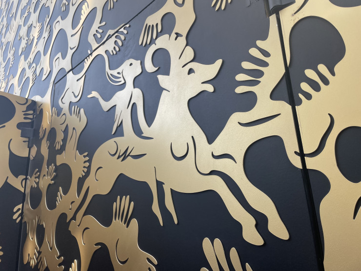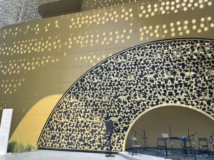 Входная арка павильона украшена петроглифами и элементами скифо-сакской культуры.