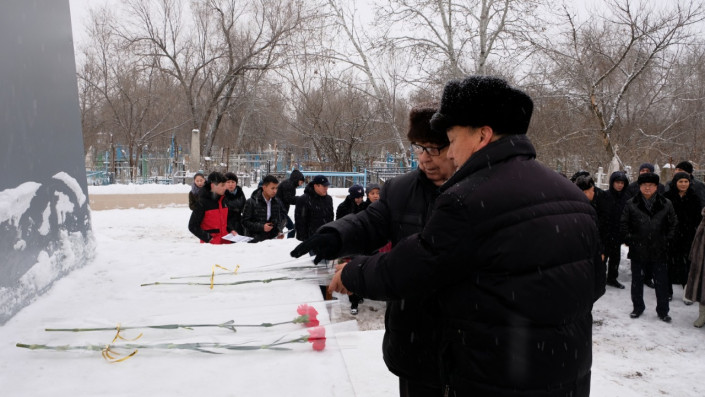 Сегодня цветы возложили у братской могилы, у памятника "Үш батыр қыз", маршалу Советского Союза Георгию Жукову, Герою Советского Союза Темиру Масину и у "Вечного огня" на площади Победы в Великой Отечественной войне.