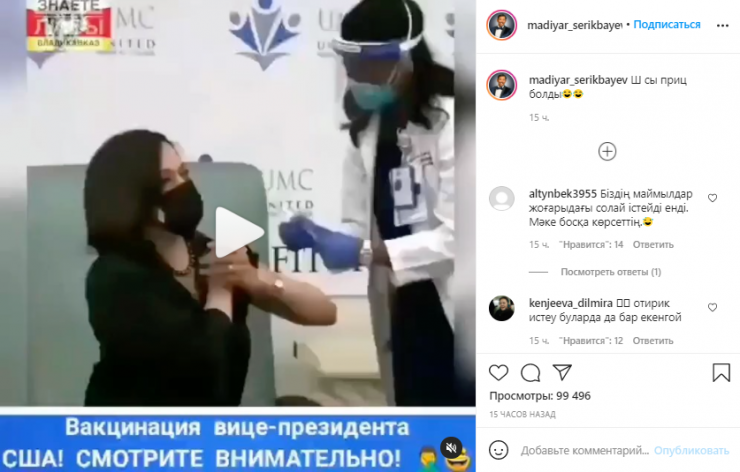 Камала Харрис 29 желтоқсанда вакцина салдырғаннан кейін, бұл видео Қазақстанда ғана емес, шетелде де қызу талқыға түскен. Видео сапасы нашар болған соң, шприц инесі көрінбейді, сондай-ақ қалпақшасы алынбағандай көрінеді.
