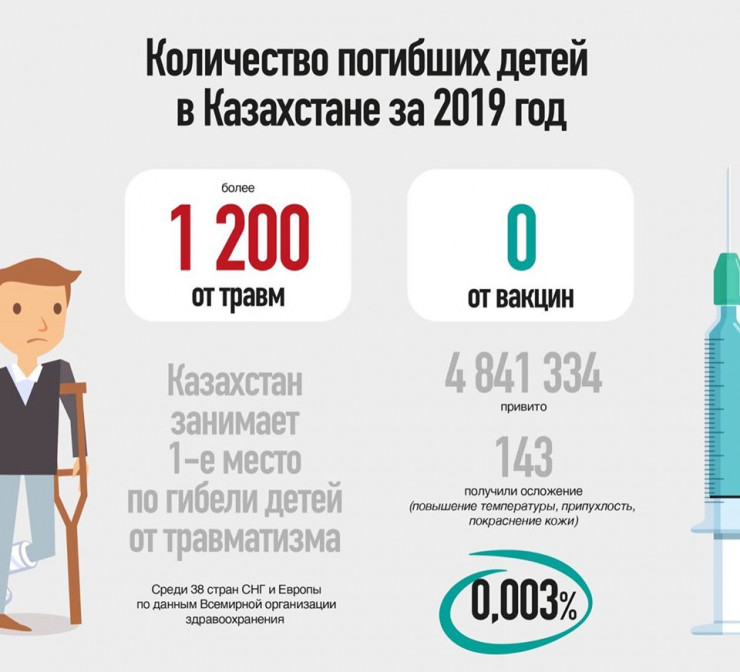 К тому же, если сравнить количество погибших детей в Казахстане за 2019 год, от вакцин это 0! Цифры говорят сами за себя", - добавил Биртанов.