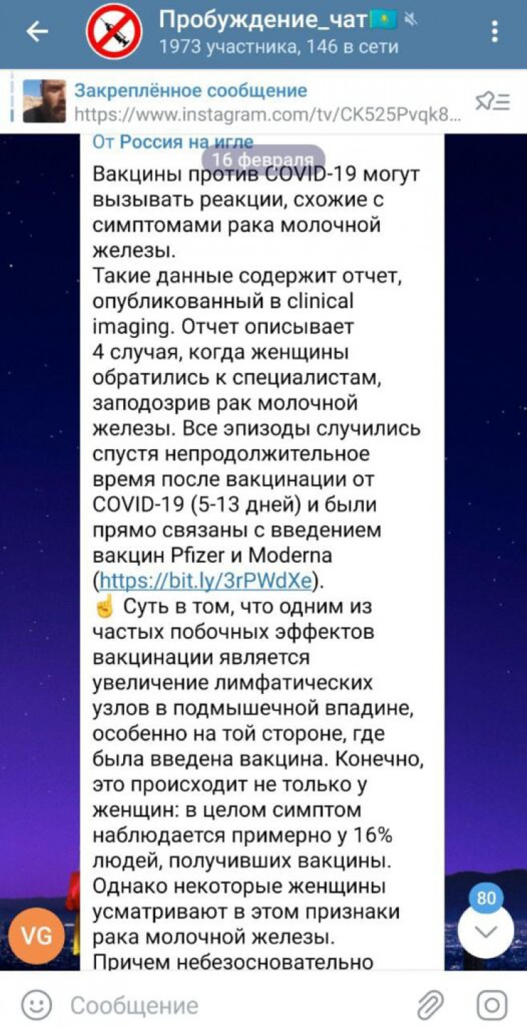 "Вакцины против COVID-19 вызывают симптомы рака груди": новый фейк обсуждают в Казнете