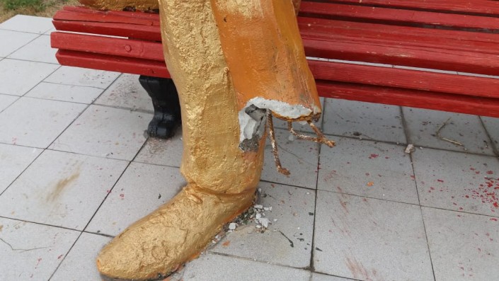 Бари Алибасову оторвали ногу. Вандалы сломали скульптуру шоумена в Усть-Каменогорске, передает корреспондент Tengrinews.kz.