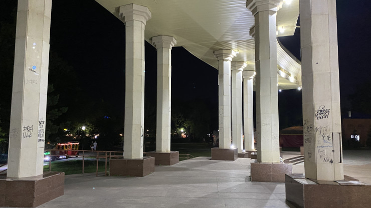 Колоннада в парке Первого Президента в Петропавловске изуродована вандалами. 16 колонн изрисованы граффити. Колоннада большая, и издалека рисунки незаметны. Однако если подойти поближе, то можно разглядеть такие надписи, как "лох", "убить сталкера" и другие. Одна из колонн как будто превратилась в доску объявлений для знакомств. На ней номера телефонов, ники в Instagram и "ВКонтакте".