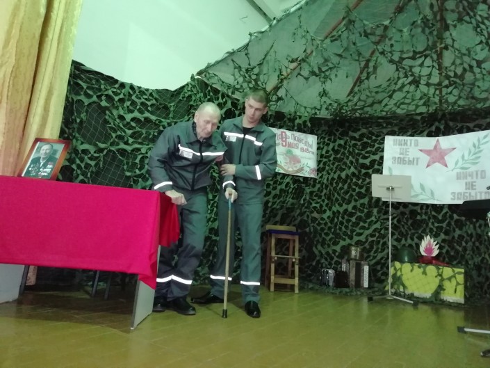 Чуть меньше месяца назад сотрудники колонии встречали у ворот необычного, по их словам, осужденного. Стены УК 161/2 не припомнят за все годы существования преступника такого преклонного возраста, к тому же ветерана. К 74-летию Великой Победы осужденные подготовили лично для ветерана праздничный концерт. Со сцены звучали до боли знакомые аккорды и песни военных лет. Как только зазвучала песня "День Победы", Иван Сурков не смог сдержать слезы. Весь концерт рядом с ветераном по правую руку сидел помощник, молодой осужденный. Он старался громко комментировать для виновника торжества все то, что звучало со сцены: пожилой мужчина плохо слышит. Поговорить лично с ветераном журналистам не представилось возможности: Иван Сурков расчувствовался, и ему стало плохо.
