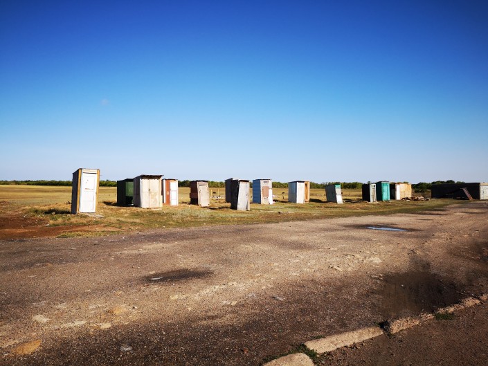 Причем возле пятиэтажки вырос целый остров из деревянных туалетов. Эта картина - первое, что бросается в глаза.