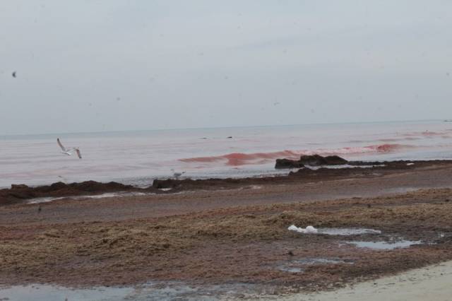 Вода на побережье Актау окрасилась в красный цвет Фото lada.kz