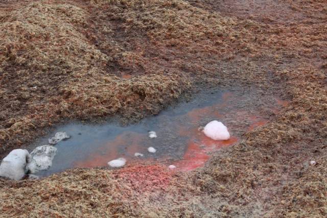Вода на побережье Актау окрасилась в красный цвет