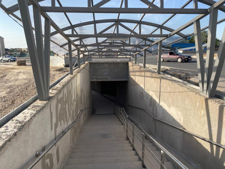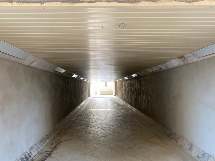 Так выглядит вход в подземный переход. Тротуар к нему не обустроен, пешеходам приходится пачкать обувь и идти по пыльной дороге либо же ходить по проезжей части. А также отсутствует внутренняя отделка.