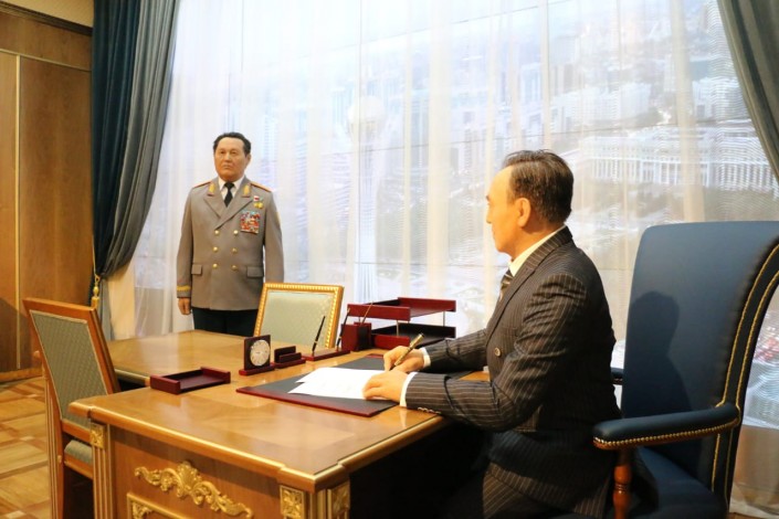 Отметим, художник, кроме этого, является автором скульптур Абылай хана и Барака Обамы, а также еще одной восковой скульптуры Нурсултана Назарбаева.