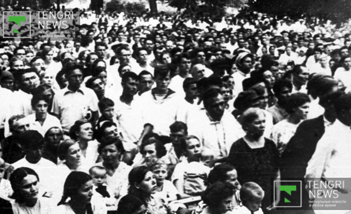 Митинг в связи с нападением фашистов на Советский Союз. Алма-Ата, 1941 год. Фото: Центральный государственный архив кинофотодокументов и звукозаписей РК.