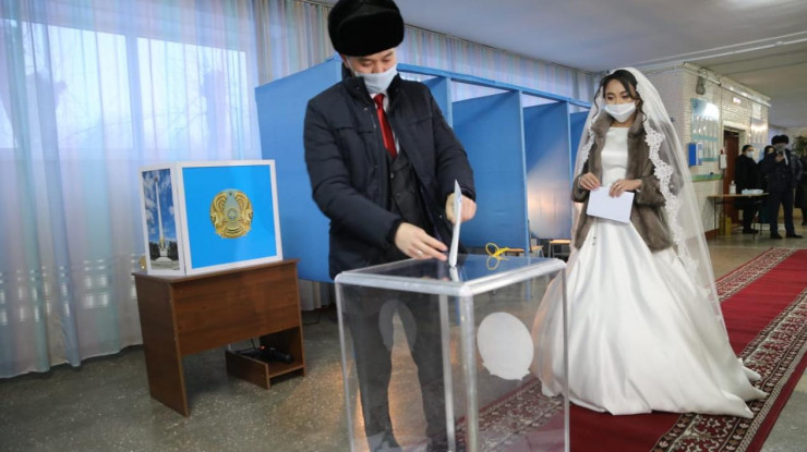 Нурболат и Карлыгаш - не единственные молодожены на выборах в Казахстане. В Нур-Султане 10 января поженились Ботагоз Калтаева и Фахат Жанбеков. Они голосовали на избирательном участке №144.