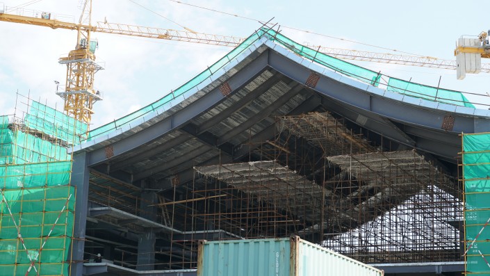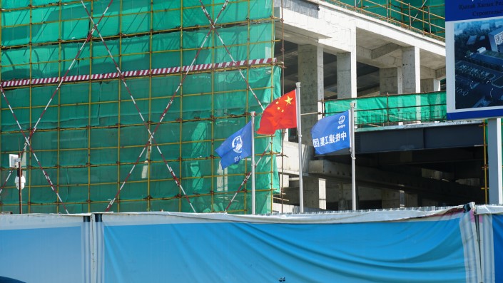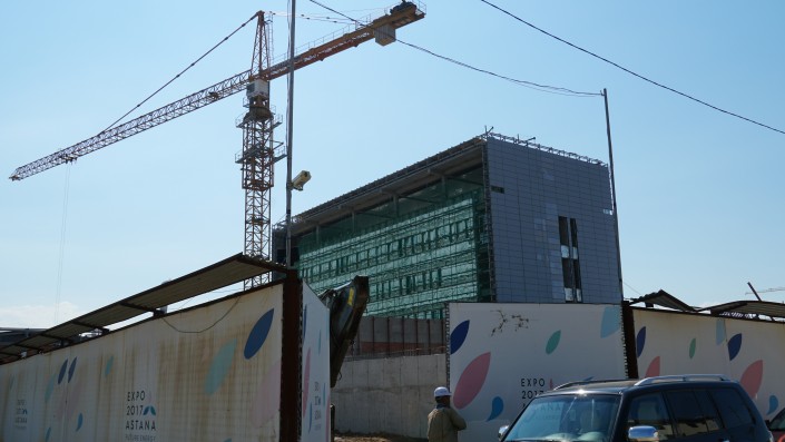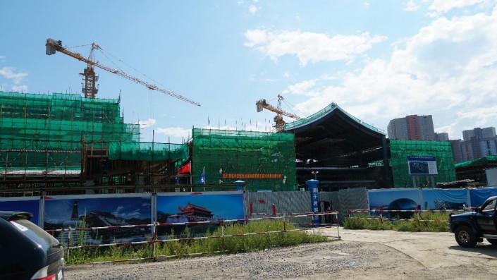 Масштабное строительство новых зданий проходит по проспекту Тәуелсіздік, 44. Издалека можно заметить очертания крыши, выполненной в национальном китайском стиле.