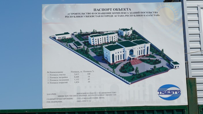 Совсем рядом идет строительство здания посольства Узбекистана.