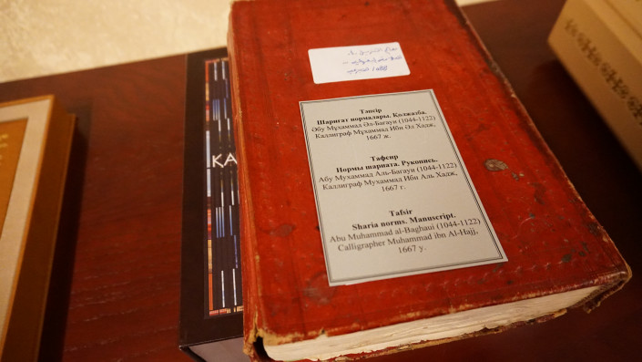 Здесь хранятся старопечатные издания XVII века, рукопись 1667 года "Нормы шариата". Редкие, коллекционные издания XIX-XX веков. Важный комплекс экспонатов - коллекция изданий Корана. Более 70 священных книг, большинство из которых на арабском языке.