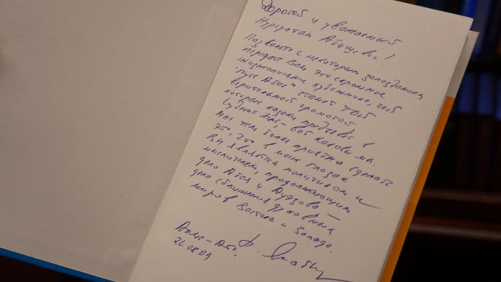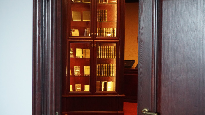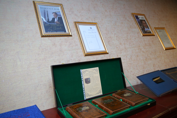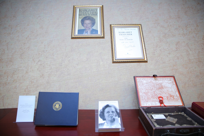Наряду с редкими коллекционными изданиями есть книги мировых политиков с их памятными надписями и визитками, например, от Маргарет Тэтчер, Ли Куан Ю, Си Цзиньпина, Бориса Ельцина, Билла Клинтона и других выдающихся личностей.